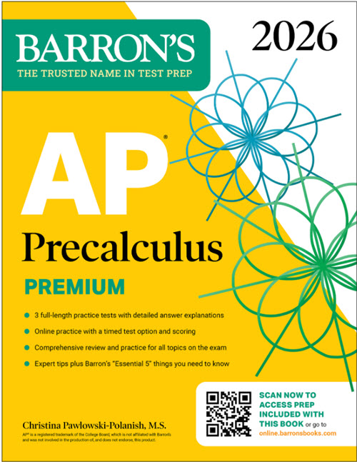 Budite potpuno spremni za ispit uz Barron's AP Precalculus Premium 2026. Ovaj vodič uključuje dubinski pregled sadržaja i praktične testove za sve teme ispita, uz dodatak Unit 4 tema koje mogu biti deo vašeg kurikuluma.